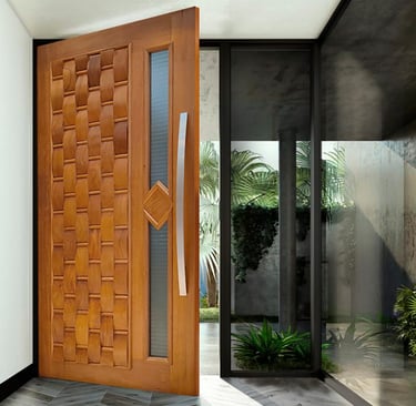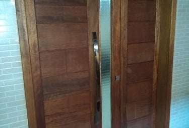 Portas em madeiras de Lei e Ecológica.